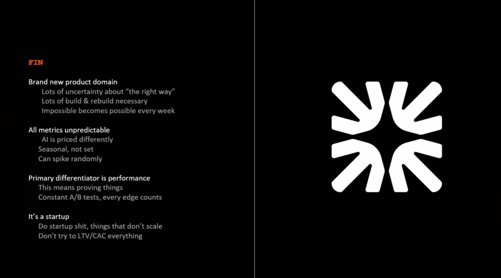 - Intercom moved 70% of R&D to Fin. Then 80%.