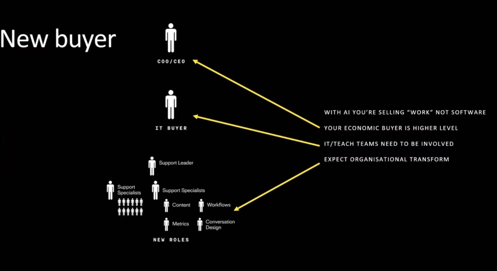 - The buyer changed: now it's C-suite + AI evaluator + functional leader, not just one champion
